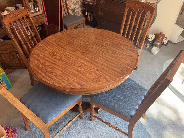 LOT 61 - Dining table w/ 6 chairs & 2 leaves