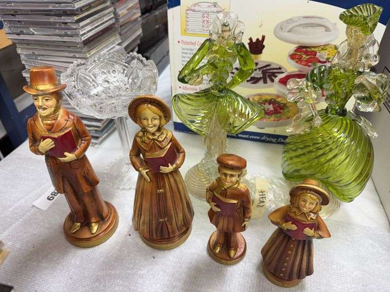 LOT 189 - RB Japan figures, 2 art glass figures (1 damaged), pattern glass compote