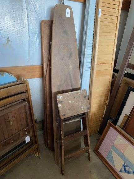 LOT 67 - 3 Antique ironing boards (1 top only) and step stool