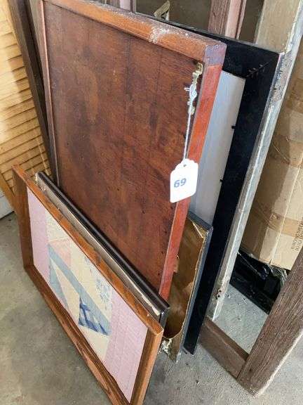 LOT 69 - Printers Tray, Framed quilt square and misc wall art